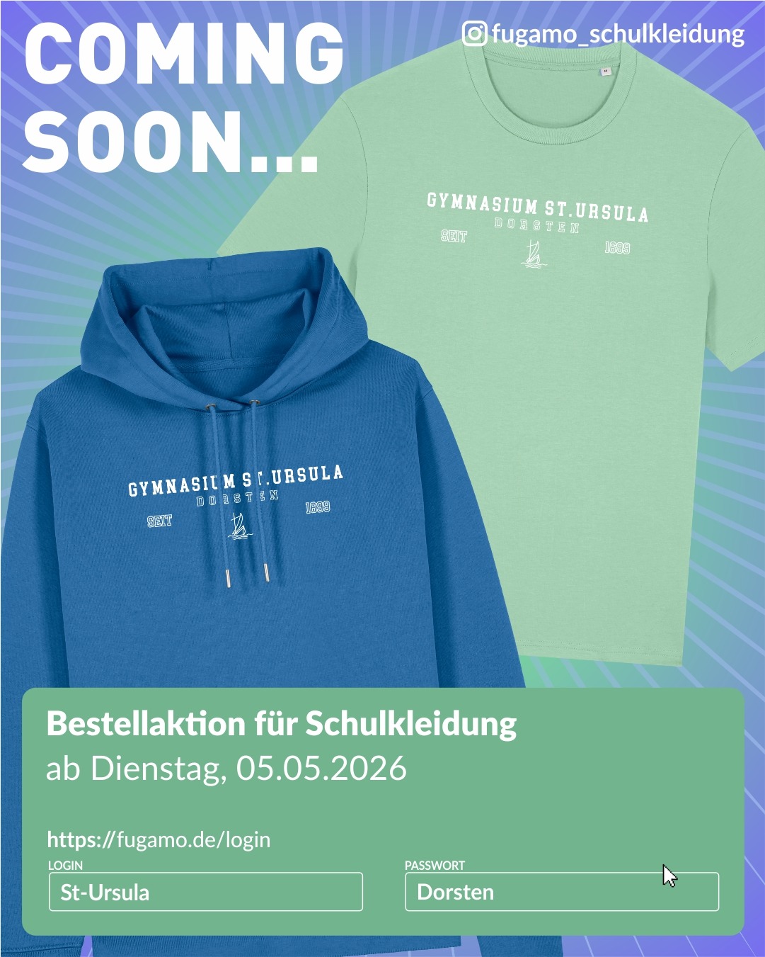 Vom 05. bis 13.05.2026 ist es wieder so weit: unsere beliebte Schulkleidung 👕👚 kann bestellt werden!