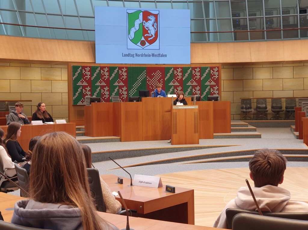 Ganz im Sinne des Kernlehrplans für Wirtschaft/Politik an Gymnasien in NRW orientieren wir uns im Fach Wirtschaft/Politik an dem Ziel, unsere SchülerInnen darin „zu befähigen, ihre Interessen in der heutigen Wirtschaft, Politik und Gesellschaft mündig zu vertreten, sachkundig zu urteilen und verantwortungsvoll sowie demokratisch zu handeln“ (Kernlehrplan Wirtschaft/Politik 2019, S. 8). Das Fach kann damit einen wesentlichen Beitrag zur „erfolgreichen Bewältigung ökonomisch geprägter Lebenssituationen [leisten] und bereitet Schülerinnen und Schüler auf individuelle Lebensführung, gesellschaftliche Teilhabe sowie politische Mitwirkung vor“ (ebd). Diese Befähigung wird zum Beispiel durch die mögliche Teilnahme unserer SchülerInnen an regionalen und bundesweit ausgeschriebenen Wettbewerben gefördert.