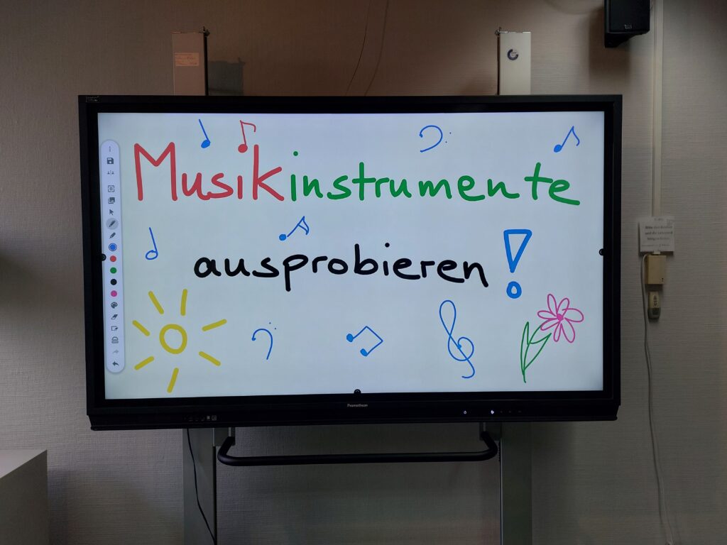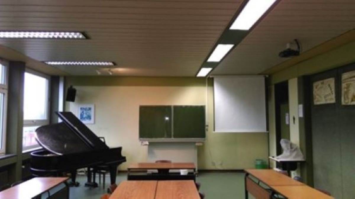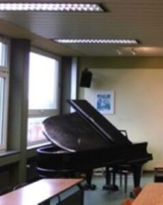 Unsere beiden Fachräume 403 und 405 sind jeweils mit einem Klavier bzw. Flügel sowie technischem Equipment wie Stereoanlage, Notebook und Smartboards ausgestattet. Zusätzlich stehen uns zwei kleinere Sammlungsräume für musikalisches Zubehör und Orff-Instrumentarium (R. 402) sowie für Notenpartituren und Musikinstrumente wie mehrere Gitarren, Rollpianos und den Keyboard-Rollschrank (R. 404) zur Verfügung. Daneben bieten sie auch Platz für Gruppenarbeiten.